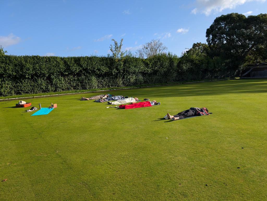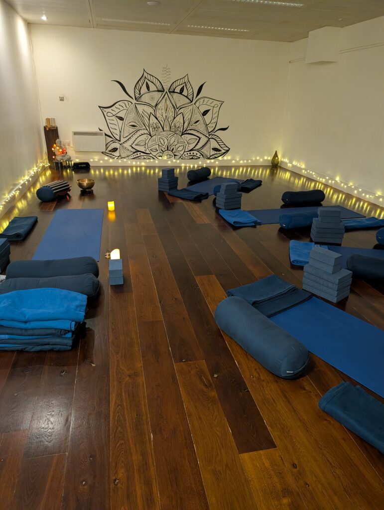 Then time for wind-down on the floor, seated and lying down, to finish with savasana and sound.